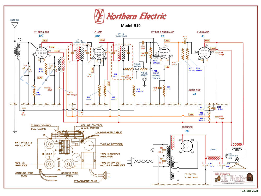 1936 Northern Electric Model 510 Modified working Schematic
