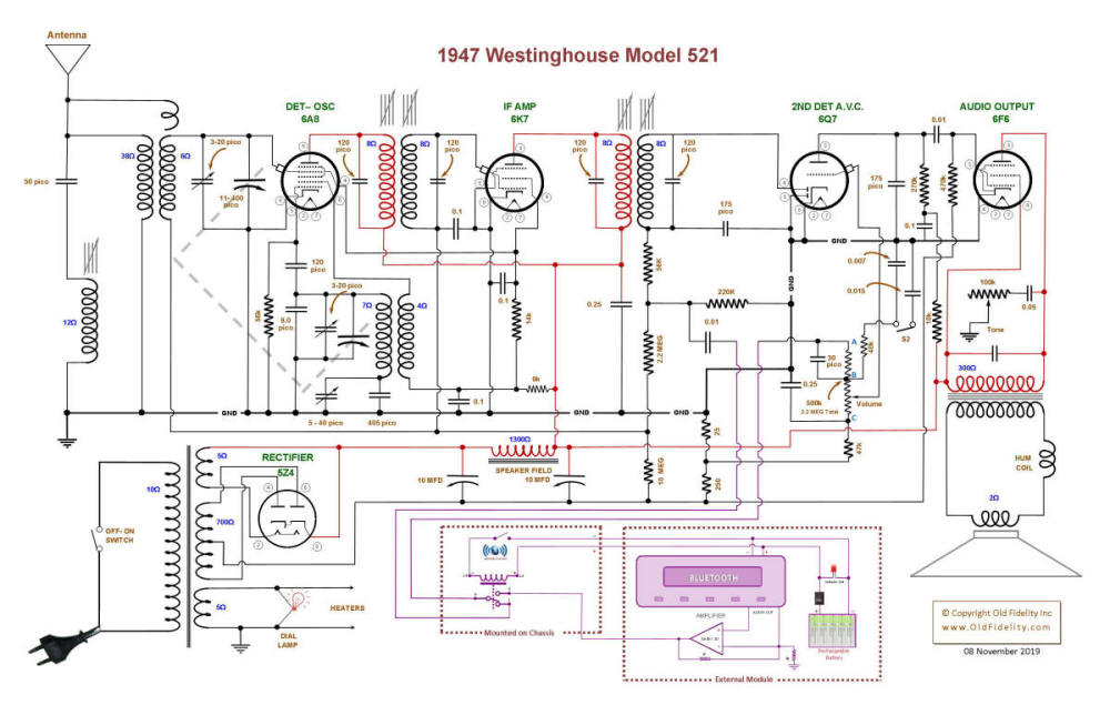 1947 Westinghouse Radio Model 521 Modified working Schematic